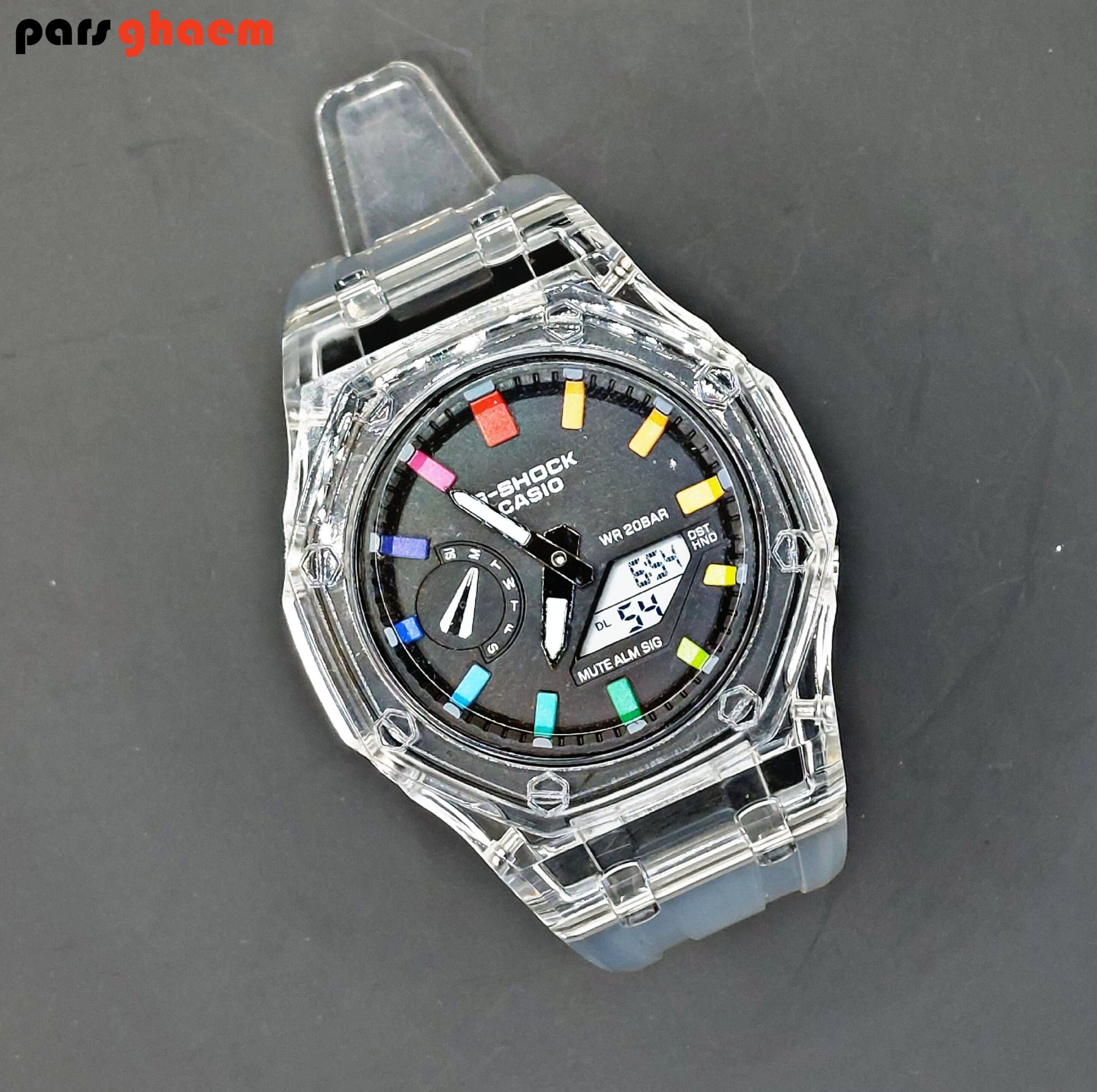 ساعت مچی اسپرت G_SHOCK CASIO شیشه ای بدون رنگ دو زمانه ضد آب