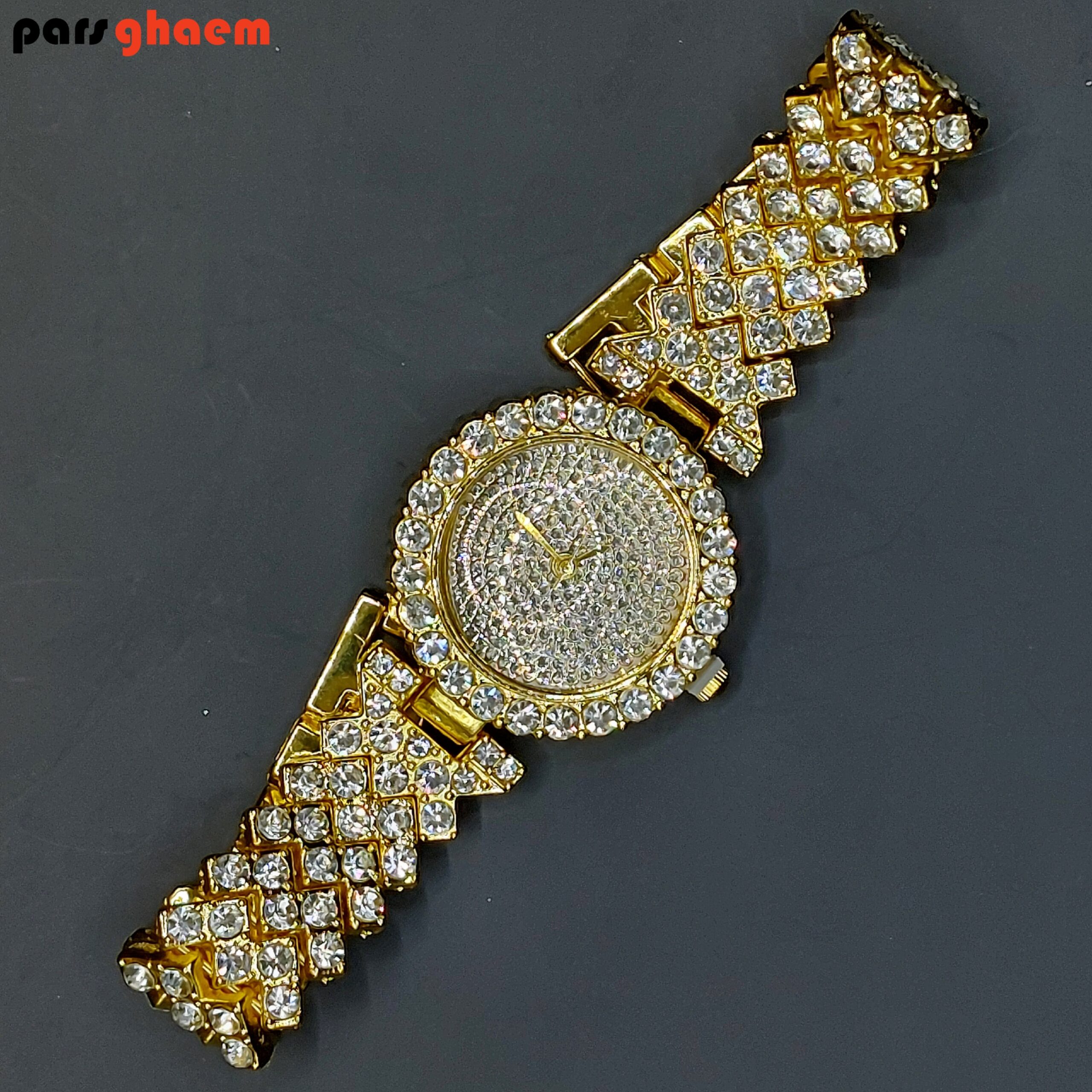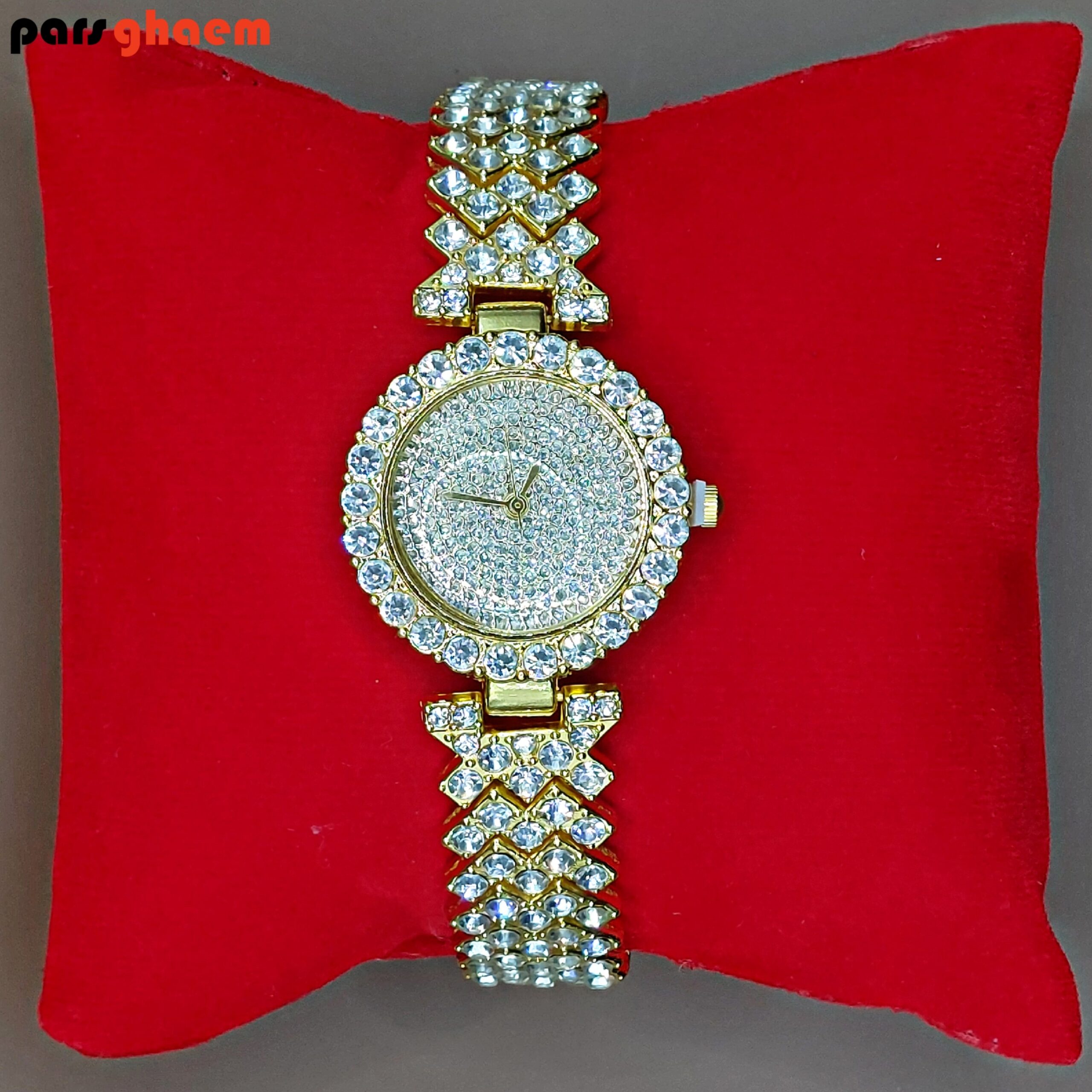 ساعت مچی زنانه و دخترانه ROYAL CROWN نگین دار طلایی