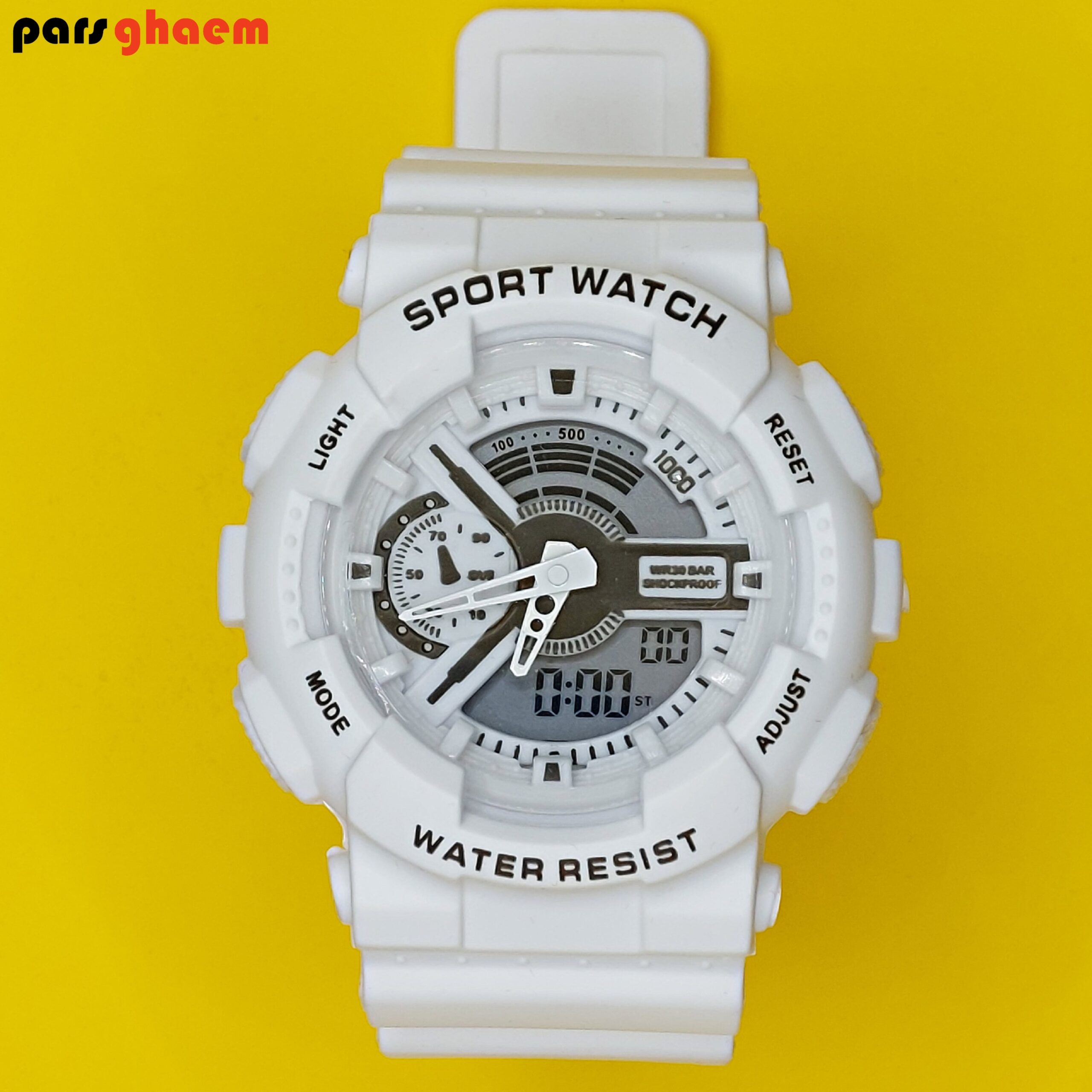 ساعت مچی sport watch طرح جی شاک دبل تایم سفید